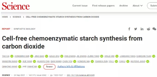 自然界中,生物从二氧化碳合成淀粉,需要大约60个生化反应,且需要复杂的生理调节。