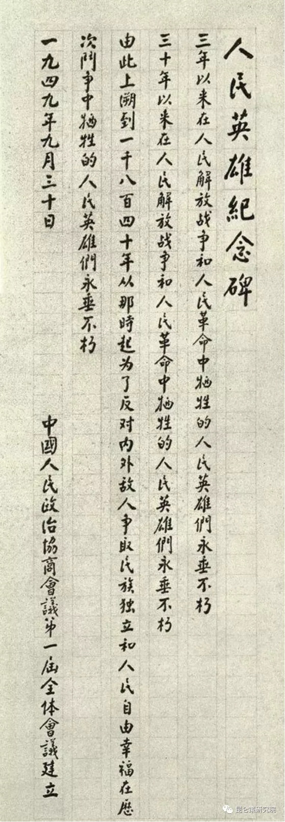 “三十年以来,在人民解放战争和人民革命中牺牲的人民英雄们永垂不朽!”