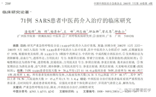 这件事,有钟南山参与写作的论文《71例SARS患者中医药介入治疗的临床研究》证明。