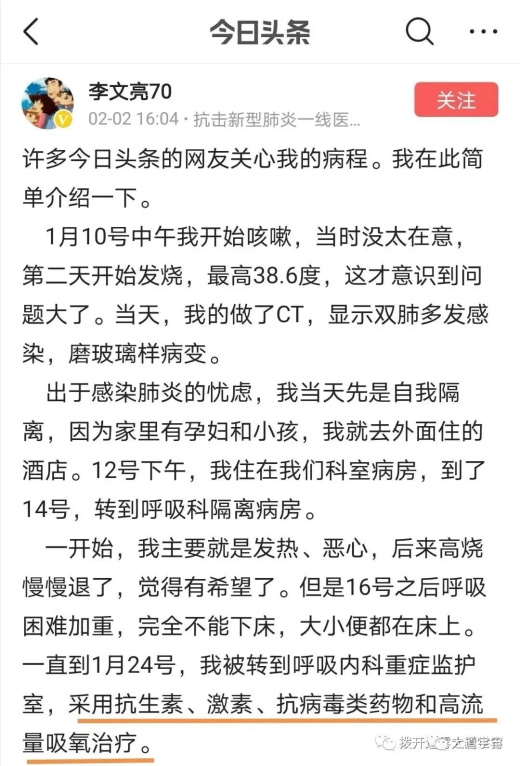 顺便说一下,17年后的李文亮也是用这样的方法治疗的。