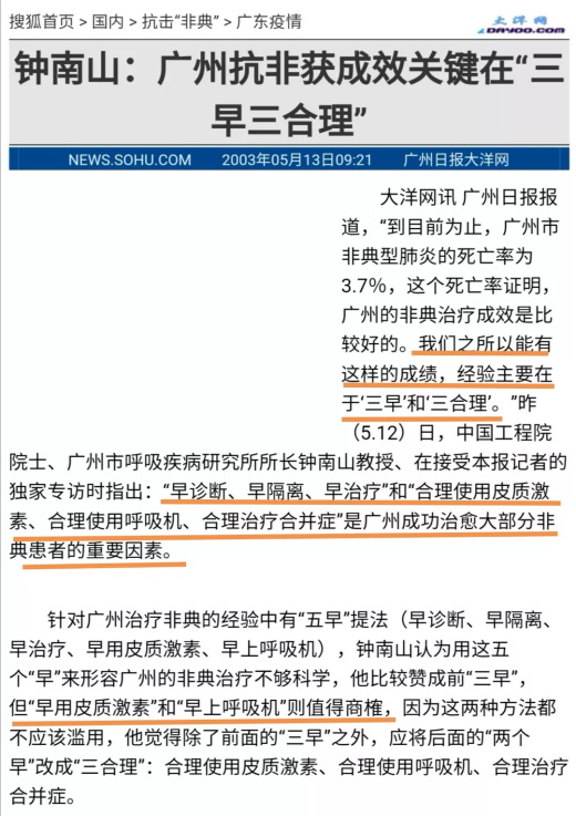 实际上,非典期间钟南山一开始用激素和抗生素治疗非典,死亡率很高。