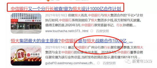 一个月前,给恒大设计超过1000亿元合作计划的中信银行广州分行行长谢鸿儒正接受有关部门的审查调查。