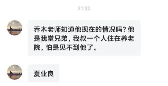 据目前住在美国的另一个前公知乔木昨天晚上在微博上发布的消息,卖国的夏业良连自己的年迈的老父亲也不要了,任凭快要死去的老父亲一个人住在养老院里,不管不问,让他的堂兄弟都受不了。