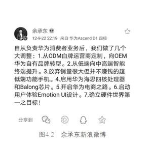 余承东到终端之后,每次在向公司汇报商业策略、战略方向后,他会把政策、战略、方向和员工讲,甚至在新浪微博上提到确立硬件世界第一的目标。