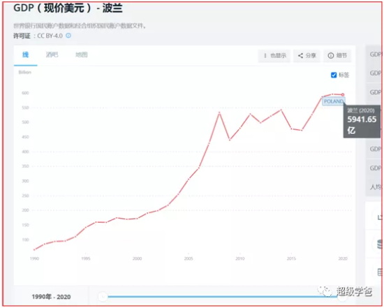 波兰这几年的发展也比较快。波兰2010年的GDP是0.4798万亿,2020年是0.5941万亿美元,十年增量是0.1143万亿美元。