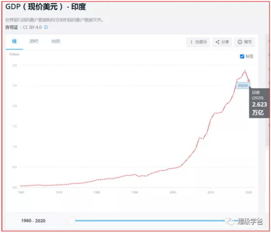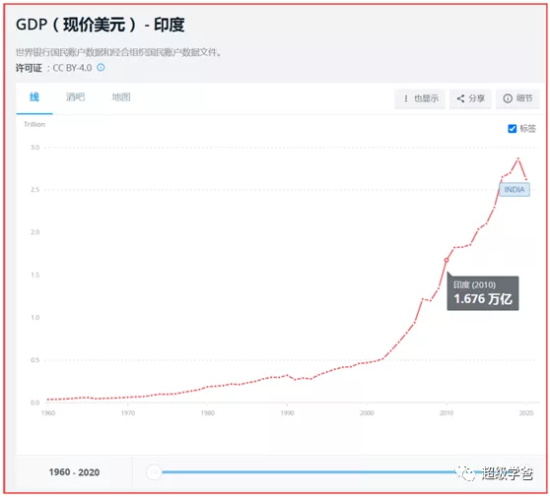 比如印度,2010年GDP是1.676万亿美元,2020年是2.623万亿,增加了0.947万亿,也就是除了中美印之外,全球十年只增加了2.876万亿。