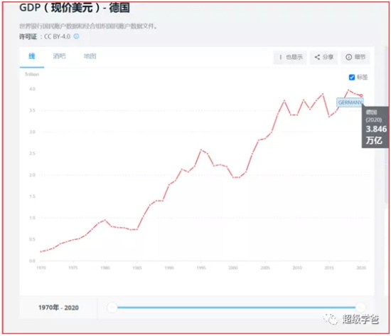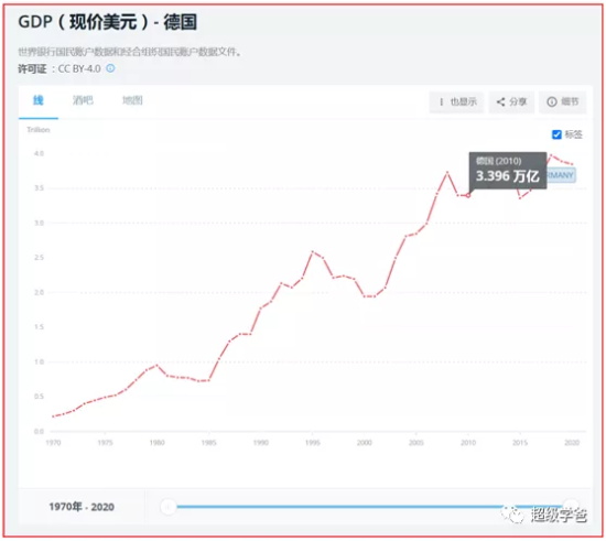 我的印象里,德国的发展也是可以的。2010年德国的GDP是3.396万亿美元,2020年是3.846万亿,十年增长量是0.45万亿美元,这意味着除了中美印韩德之外增量是1.939万亿。