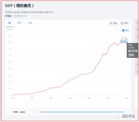 还给出了证据。说2010年全世界GDP总量是66万亿美元,到了2020年,全世界经济总量是84.5万亿美元,增长了18.5万亿美元,似乎增长了不少。