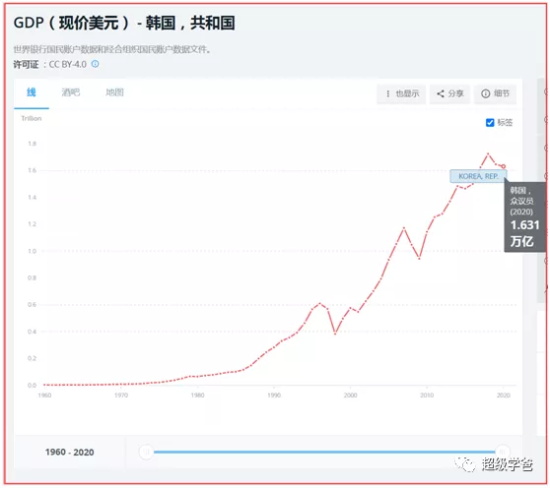 韩国的十年的经济增长也挺快的。2010年是1.144万亿,而2020年是1.631万亿,十年增长了0.487万亿。这也说明除了中美印韩之外的世界,十年只增长了2.389万亿。