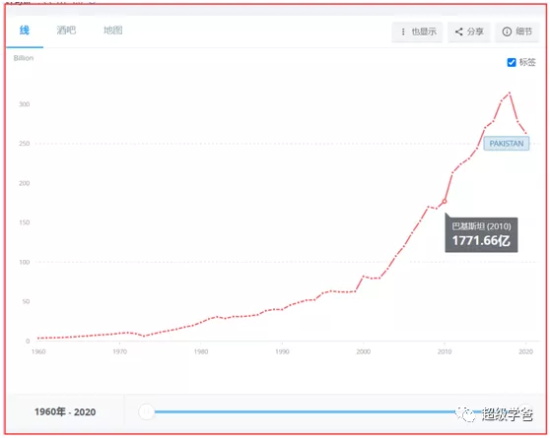 巴基斯坦发展也挺迅猛,2010年的GDP是0.1771万亿美元,2020年是0.2636万亿美元,十年增量是865亿美元。