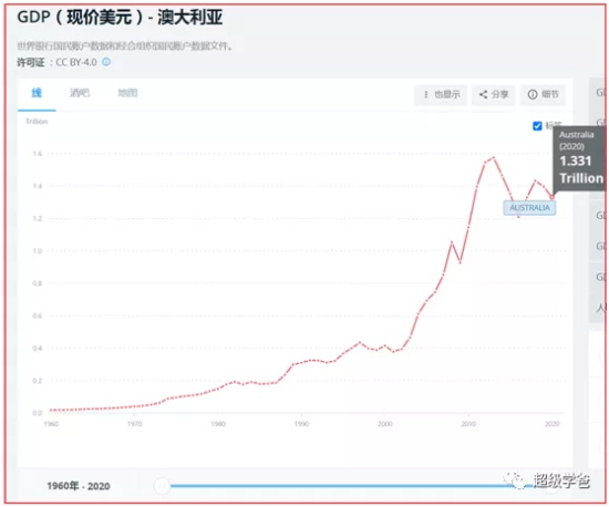 澳大利亚的经济发展也是比较快的。2010年澳大利亚的GDP是1.146万亿美元,2020年是1.331亿美元,十年增长了0.185万亿美元。