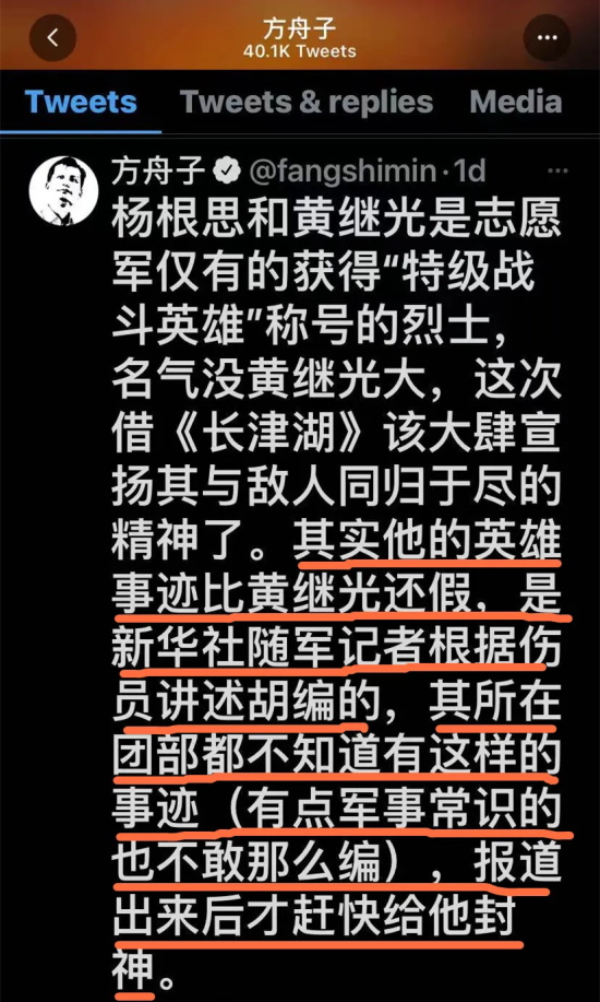 方舟子造的最新谣言很简单,他说杨根思的事迹是假的,并拿出了所谓的“证据”。