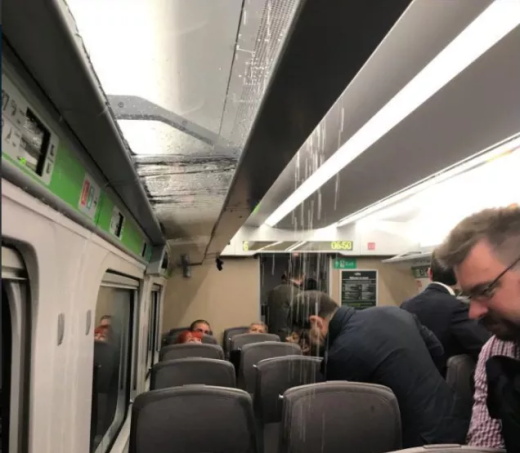 没想到首班列车就遭遇尴尬,在行驶了25分钟后,车内空调突然严重漏水,整个车厢变成了“水帘洞”。