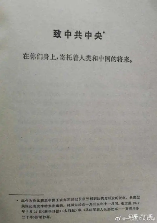 1935年底,鲁迅从外国友人史沫特莱处得知毛泽东所领导的中国工农红军长征到达陕北,与陕北红军胜利会师。