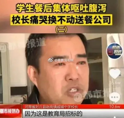 另一件是河南新乡封丘县某中学营养午餐事件,因为校长面对采访时掩面痛哭而上了热搜,从而揭开了营养餐的内幕。