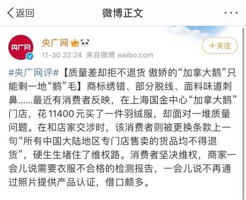 央视怒斥:质量差还拒不退货,小心最后只剩一地“鹅”毛!