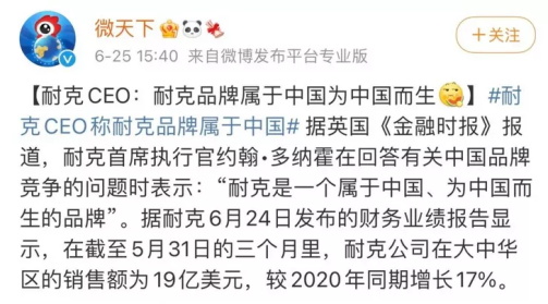 3、还有与HM同一拨的狗队友阿迪和耐克,他们比HM做的更绝,却在一波抵制声音过后得以继续在中国捞钱,电商平台也没有封杀,经历短暂的销量低谷,老板摆出一副认怂姿态,很快就迎来了中国消费者的重新追捧。