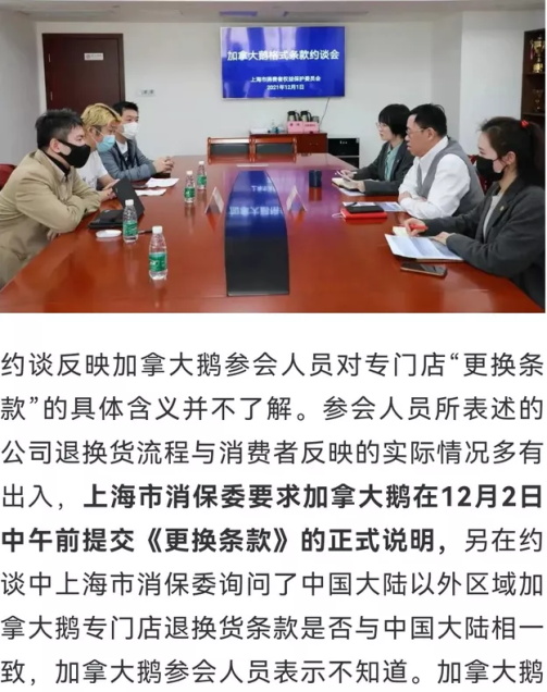 可惜还是有点晚了,就在今天12月1日下午,上海消保委直接约谈加鹅运营方,对方还在装聋作哑,上海明令要求加鹅12月2日中午前提交正式说明,并明示中国大陆以外的退换货条款是否与中国一致。