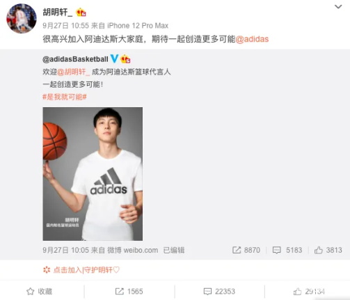 阿迪达斯甚至还成功签约了一名新疆篮球运动员作代言人,讽刺意味十足。