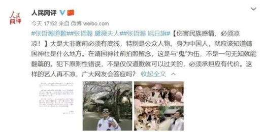 身为中国人,就应该知道靖国神社是什么地方,在靖国神社前拍照留住,是这与“鬼”为伍,不是一句无知就能翻篇的,犯下原则性错误,不是仅仅道歉就可以过关的。事关民族大义,不容任何试探,更不容有任何挑战。若明知故犯,就得付出沉重代价。