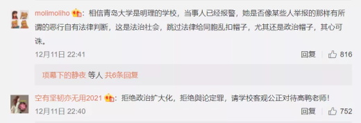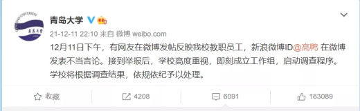 12月11日晚上10时10分,青岛大学官方微博发帖称: