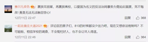 如果认真看这些留言,虽然其内容貌似不一,可是却均有如“网络定罪”、“网络黑子”、“打着爱国名义”、“已报警”等关键内容或关键词。