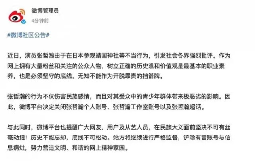 一时间,舆论哗然,网友痛批,合作品牌迅速宣布解约,涉事艺人一夕之间掉光所有代言,微博立即宣布关闭张哲瀚个人账号、工作室账号以及超话。