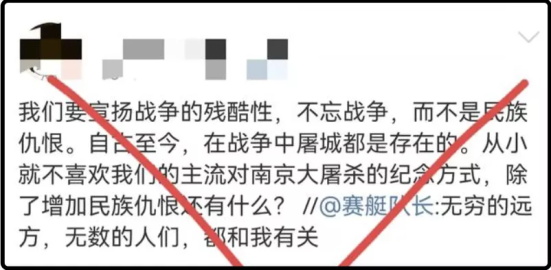 这种批评中国人、让中国人在日本侵华史问题上不断妥协的说辞,何其恶毒。杀人犯在那逍遥法外,受害者的家属批评两句“恶魔之过”还不可以了?简直霸道,天理难容。要我说,发表那种“批评中国人铭记南京大屠杀”言论的人,如果是日本人,那真就是反人类的了,是枉为人的;而如果是中国人,那便是极其下贱的,是贱到骨子里的败类。这些人,不仅仅应该受到舆论的谴责,还应该受到道德、法律和更高层面的审判与制裁。中国人铭记南京大屠杀的血泪史,绝不是为了“宣扬仇恨”,而是为了警惕军国主义复辟、反对法西斯主义、牢记落后就要挨打的历史教训。更何况,日本人还未就侵华罪行正式道歉,甚至到今天还在否认那段历史。在这样的情况下,就算是中国人要“记仇”,又怎么了?