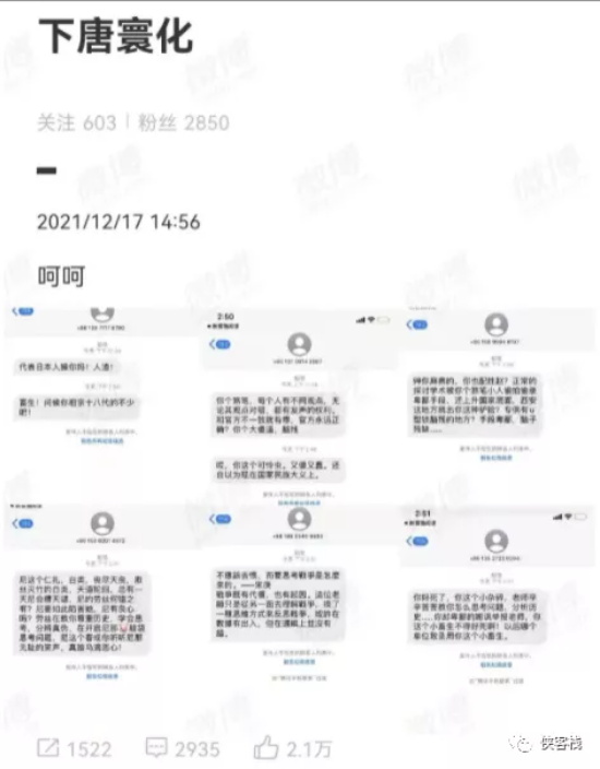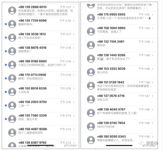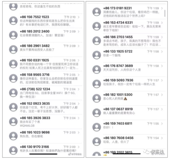 接下来,爱国学生受到精日势力的集中攻击,短信侮辱、垃圾信息轰炸、电话骚扰、公然威胁。