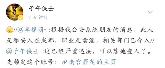 公安机关已经对@南宫葬花 开展调查,居然是名妓女。