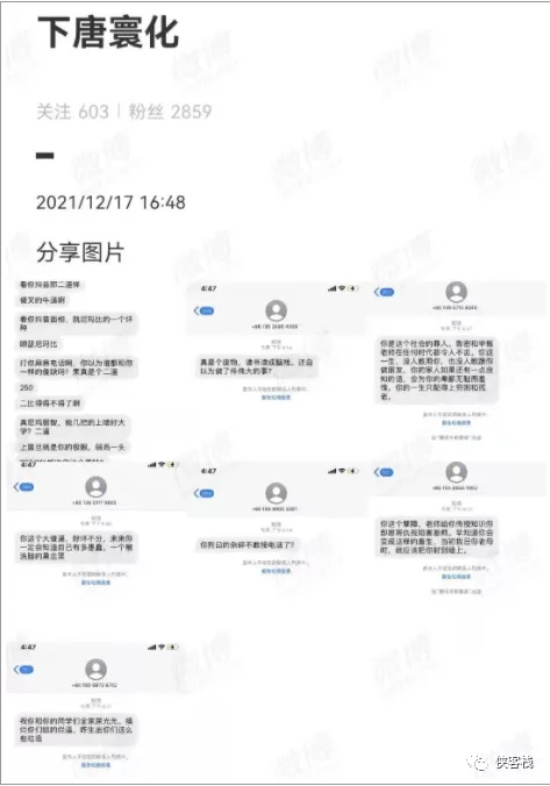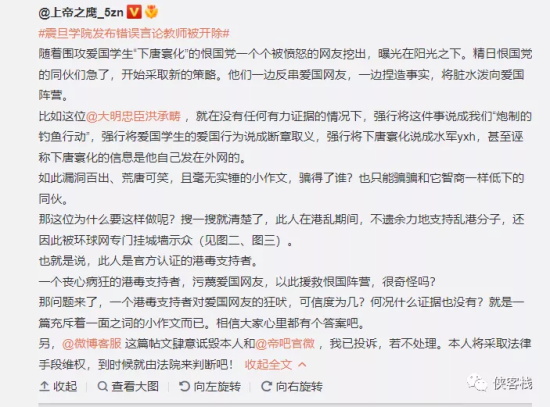 比如有个貌似是个大学老师的账户,公然威胁爱国学生的。