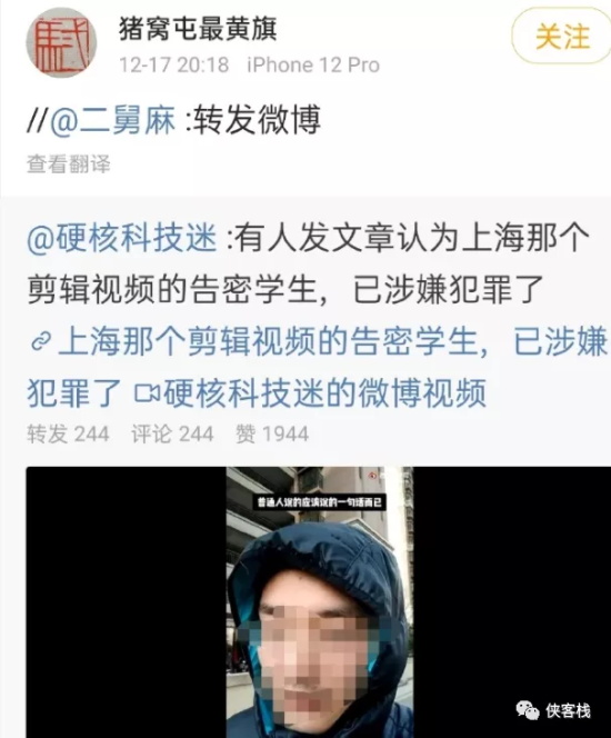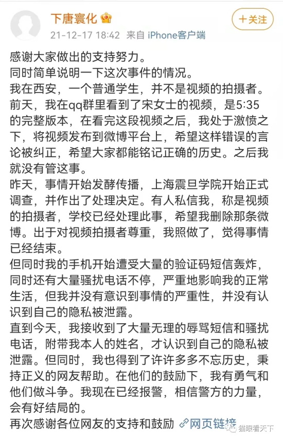 爱国学生还澄清他并不是拍摄者,他是在QQ群中看到该视频发到了微博上。