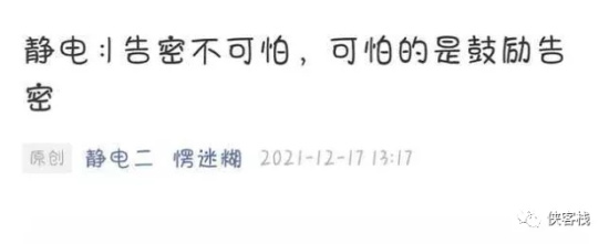 比如公众号静电发文《告密不可怕,可怕是鼓励告密》。