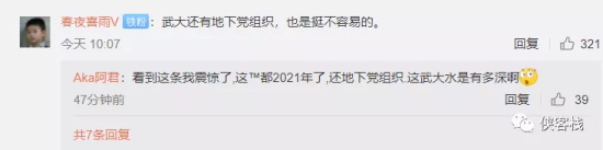 网民Aka阿君 指出:看到这条我震惊了,这™都2021年了,还地下党组织.这武大水是有多深啊[吃惊]