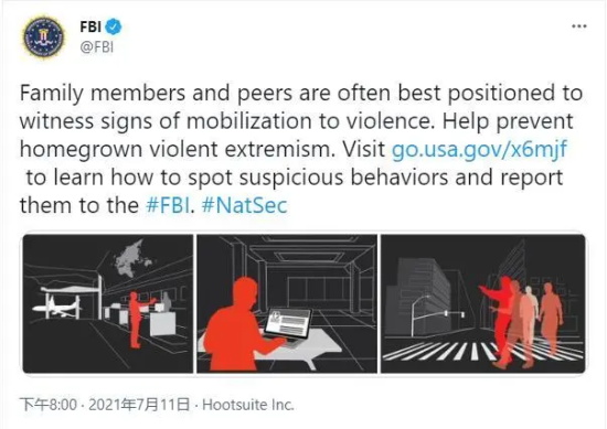在今年的7月11日,美国联邦调查局即FBI更是公开发布消息,要求美国民众举报自己的父母、子女等家庭成员。