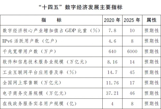 “十四五”数字经济发展规划