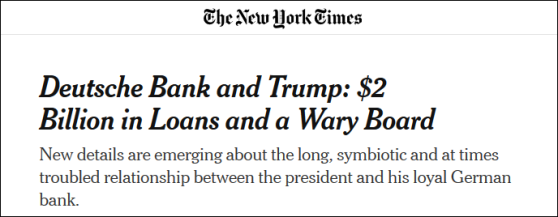 下图是《纽约时报》2019年3月19日报道截图:德意志银行和特朗普:20亿美元贷款和“谨慎的”董事会