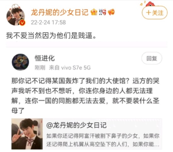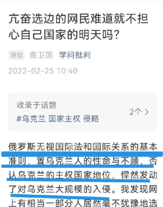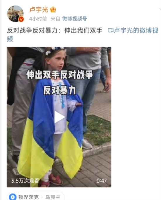 公开发文站在国家立场的对立面,还对不支持乌克兰的网民进行攻击。