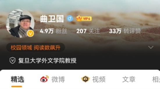再比如另一个大学教授,上海复旦大学外文学院的教授。