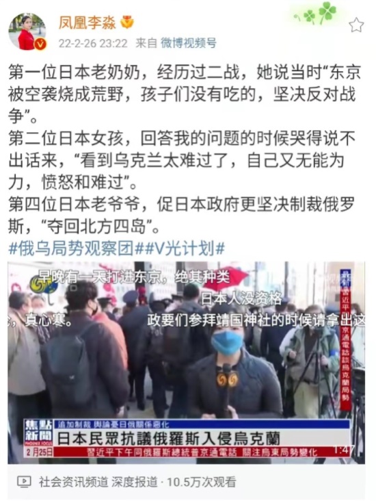 另一个凤凰驻日本的记者,也大发“圣母心”,开始“反战”宣传了。