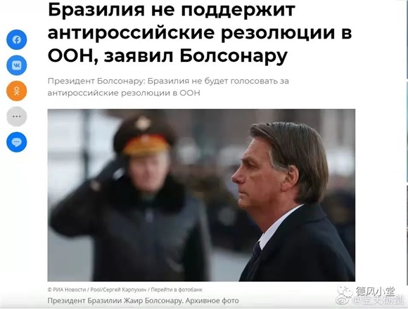 当欧美国家都纷纷谴责俄罗斯的时候,只有巴西的“热带川普”波索纳罗拒绝谴责俄罗斯,反而要声援俄罗斯。而日本前首相安倍,也与波索纳罗类似,持保留态度。对了,巴西总统是唯一一个明确表示不接中异喵的总统。