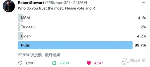 真图:一个调查,MSM,加拿大总理特鲁多、美国总统拜登,俄罗斯总统普京,你支持谁?