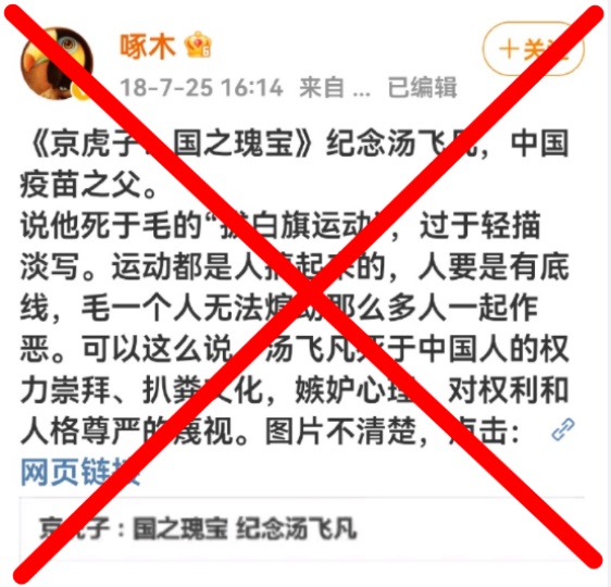 比如2018年7月25日,他发帖再次用极其恶毒的语言,对毛主席进行造谣、污蔑。