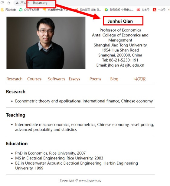 在@啄木 的微博主页面上,有一个网址:jhqian.org 。