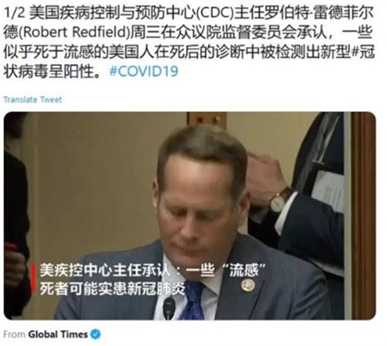 2020年3月11日,美疾控中心主任罗伯特·雷德菲尔德博士公开承认,在新冠疫情前,美国被诊断为流感的病例实际上就是得的新冠肺炎。