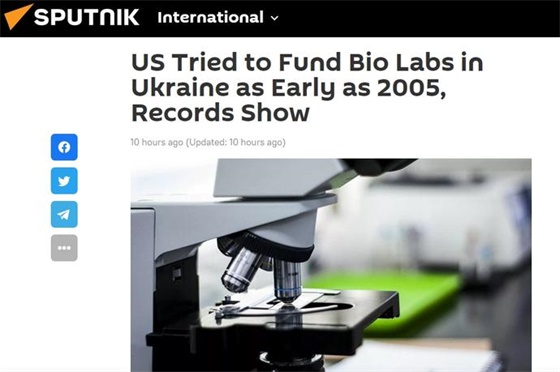 3月12日,俄罗斯卫星社进一步披露,有记录显示,美国早在2005年起就启动了资助乌克兰建立生物实验室的计划。