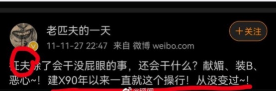 如果单单是这些倒也罢了,这些账号还普遍的对不站队美西国家立场的中国网民统统污辱为“黄俄”、“俄孝子”等,可以说是没有底线的疯狂攻击。