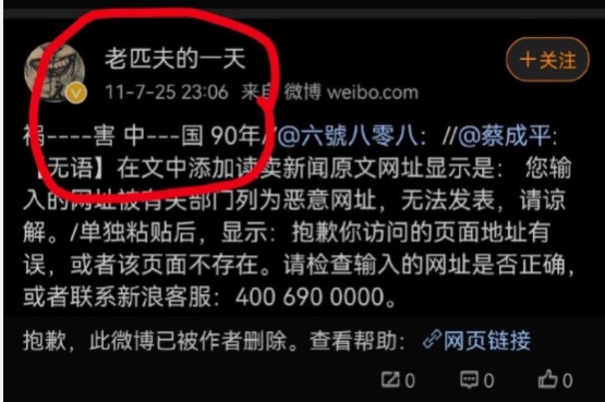 还好,这个“老匹夫的一天”随即被销号处理了。