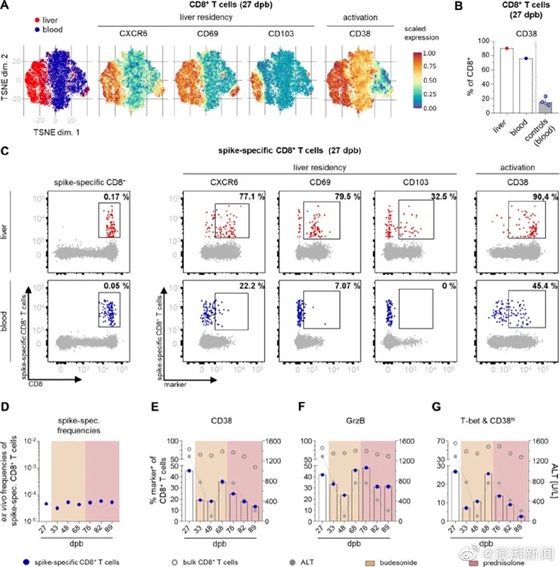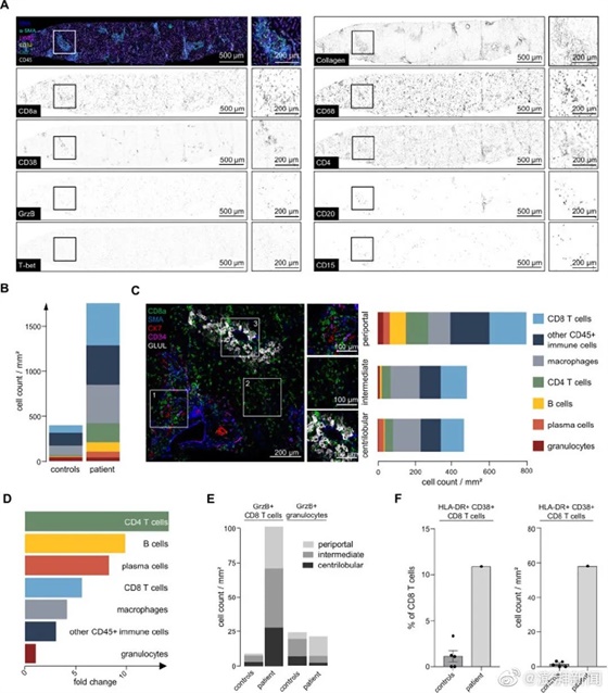 此外,研究人员还在患者的肝脏组织中发现了T细胞和B淋巴细胞、巨噬细胞、粒细胞和浆细胞的浸润。
