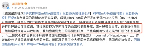 辉瑞mRNA疫苗或引发自身免疫性肝炎